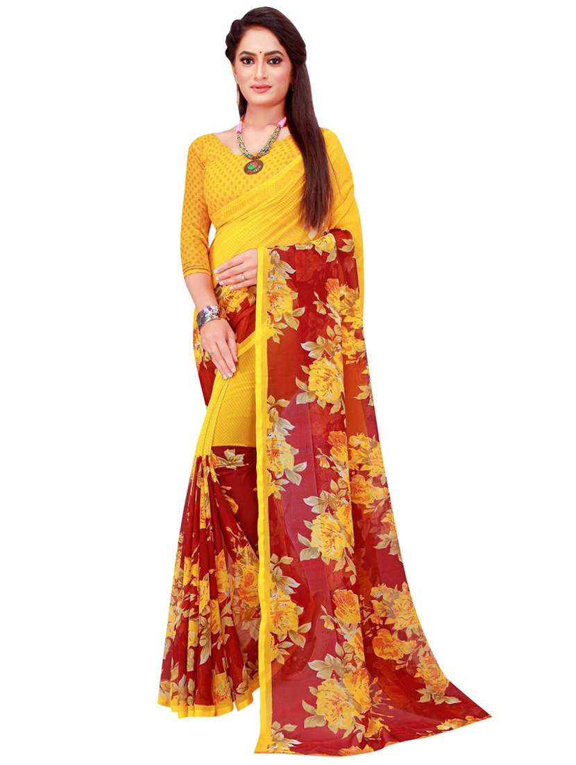 - » women's floral yellow colored saree with blouse