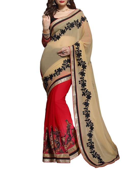 red georgette half and half saree with blouse - 13264693 - Very Small Image - 1
