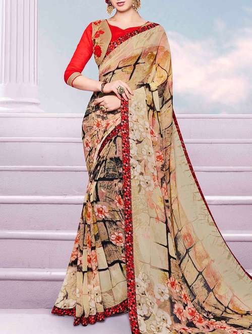 lace border floral printed saree with blouse