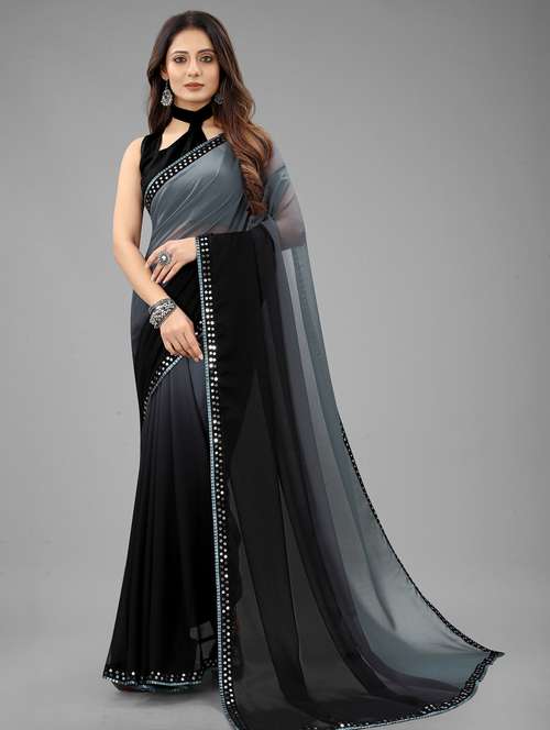 women black & grey solid plain saree with blouse