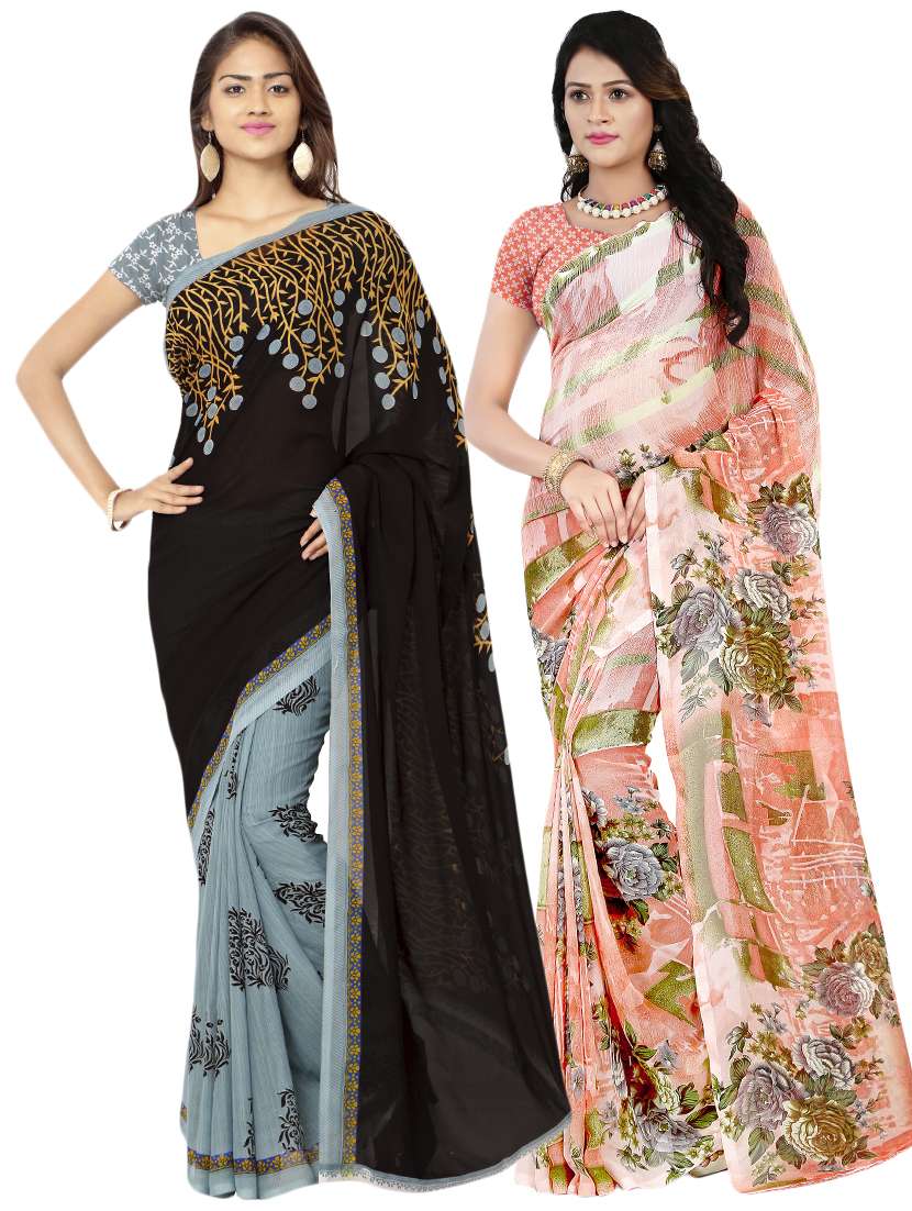 multi colored georgette combos saree with blouse - 16425460 - Very Small Image - 1