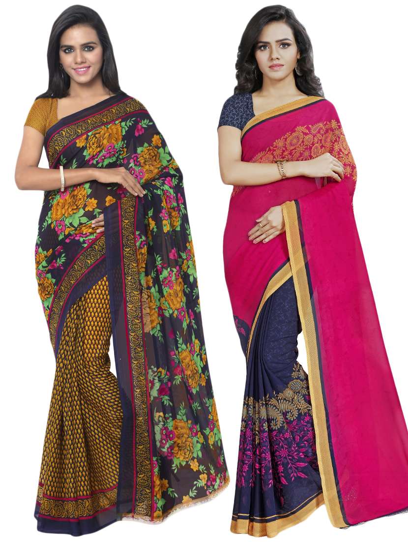 multi colored georgette combos saree with blouse