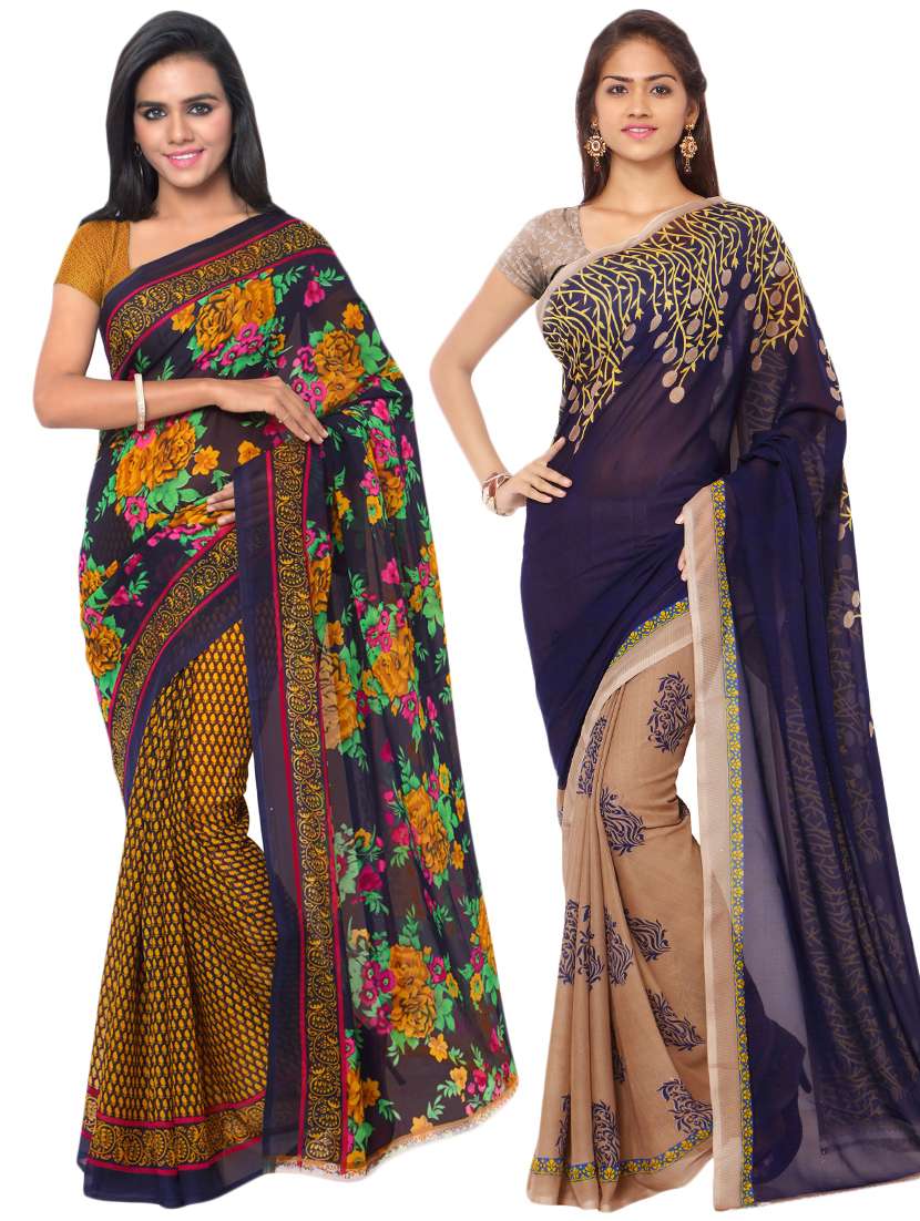 multi colored georgette combos saree with blouse