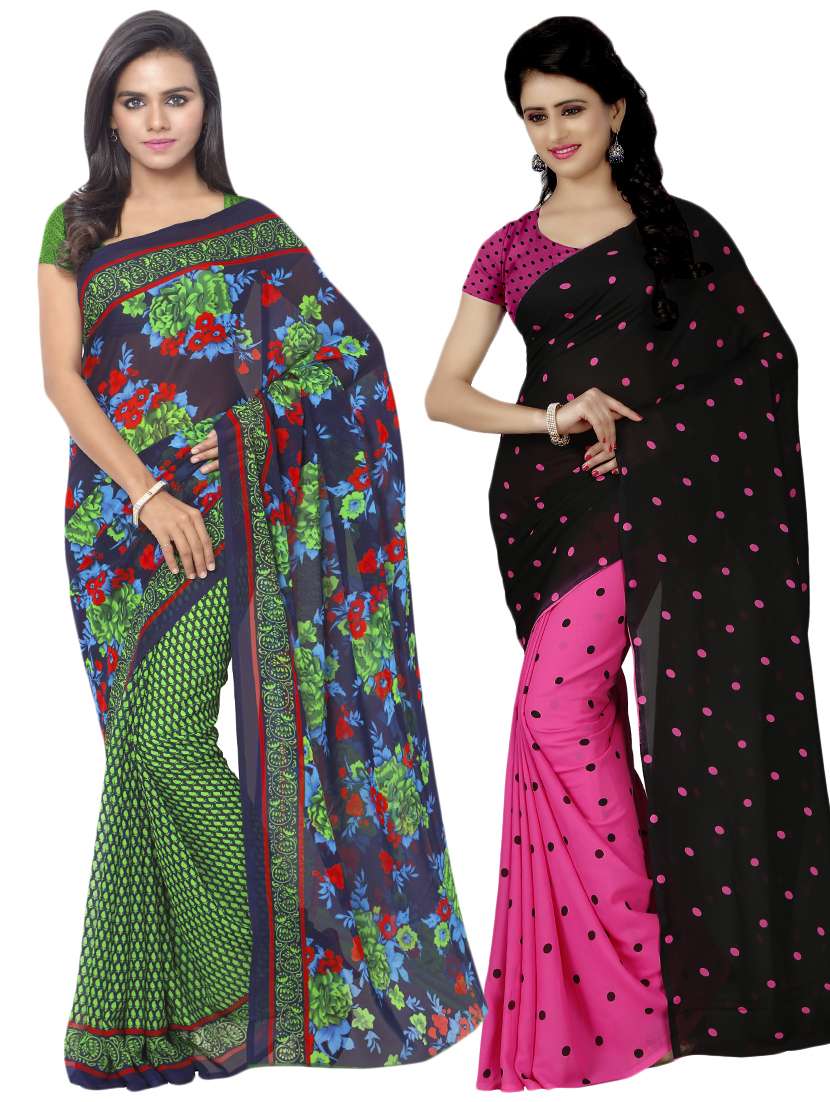 multi colored georgette combos saree with blouse