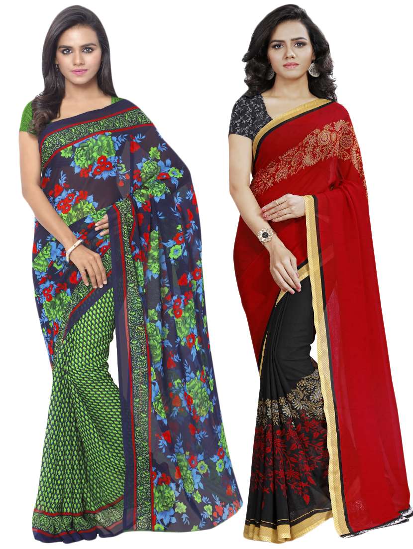 set of 2 multicolor printed saree combo with blouse