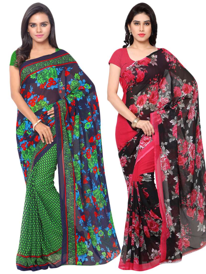 set of 2 multicolor printed saree combo with blouse - 16425609 - Very Small Image - 1