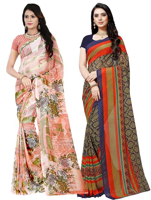 set of 2 multicolor printed saree combo with blouse