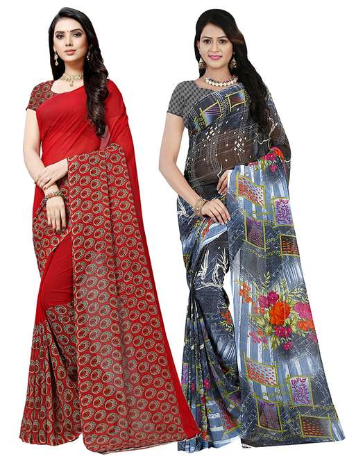 set of 2 multicolor printed saree combo with blouse