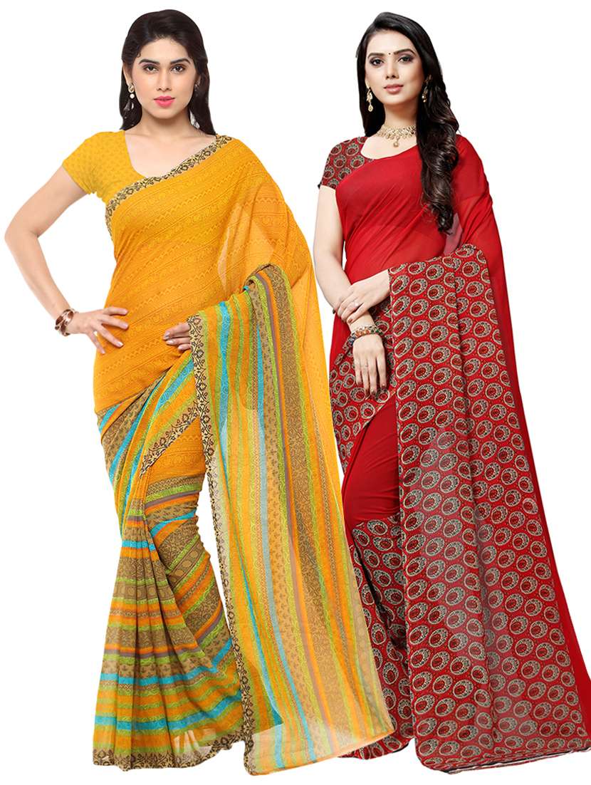 set of 2 multicolor printed saree combo with blouse - 16426121 - Very Small Image - 1