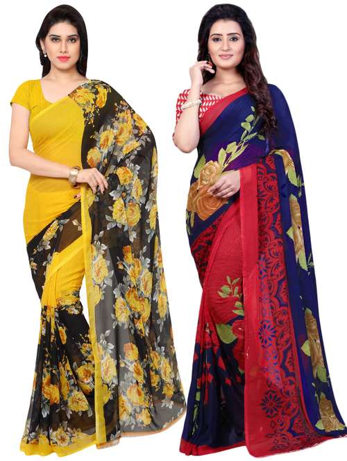 set of 2 multicolor printed saree combo with blouse