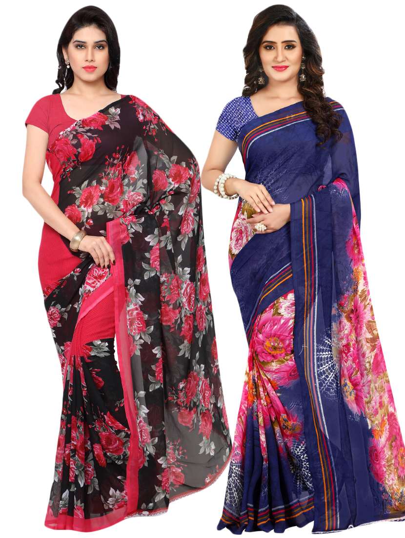 set of 2 multicolor printed saree combo with blouse - 16426467 - Very Small Image - 1