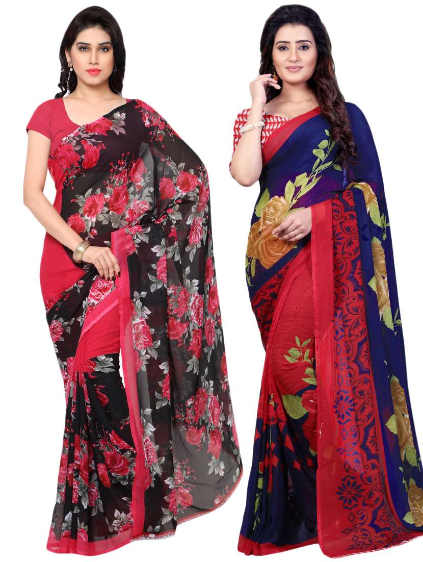 set of 2 multicolor printed saree combo with blouse