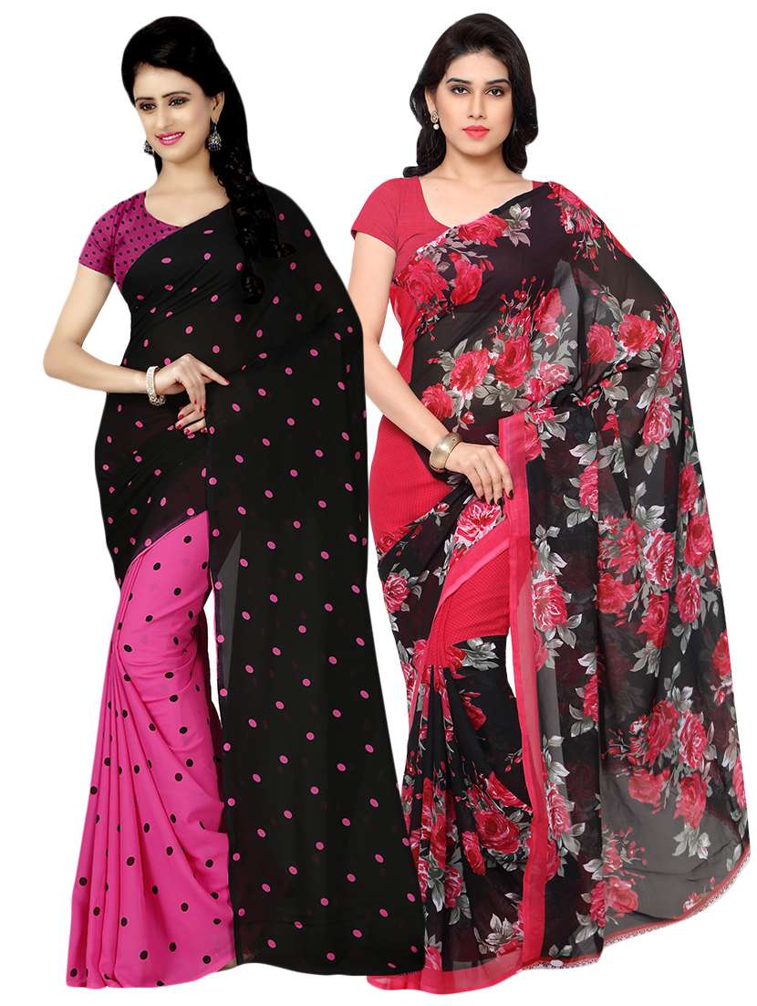 set of 2 multicolor printed saree combo with blouse - 16426481 - Very Small Image - 1