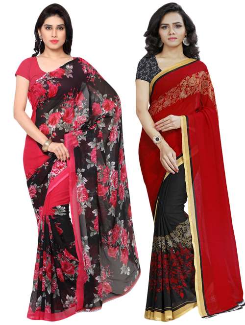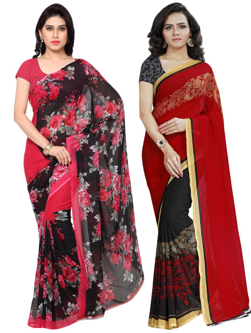 set of 2 multicolor printed saree combo with blouse