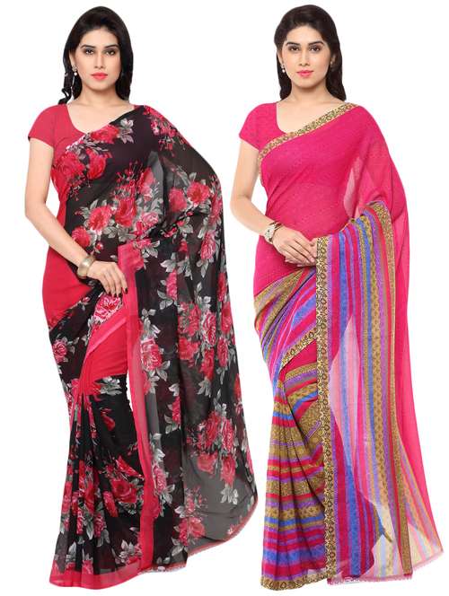 set of 2 multicolor printed saree combo with blouse - 16426497 - Very Small Image - 1