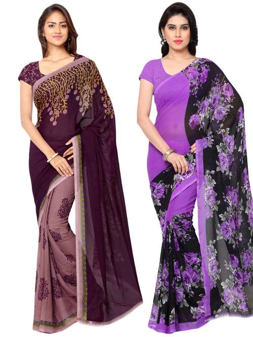 set of 2 multicolor printed saree combo with blouse - 16426732 - Very Small Image - 1