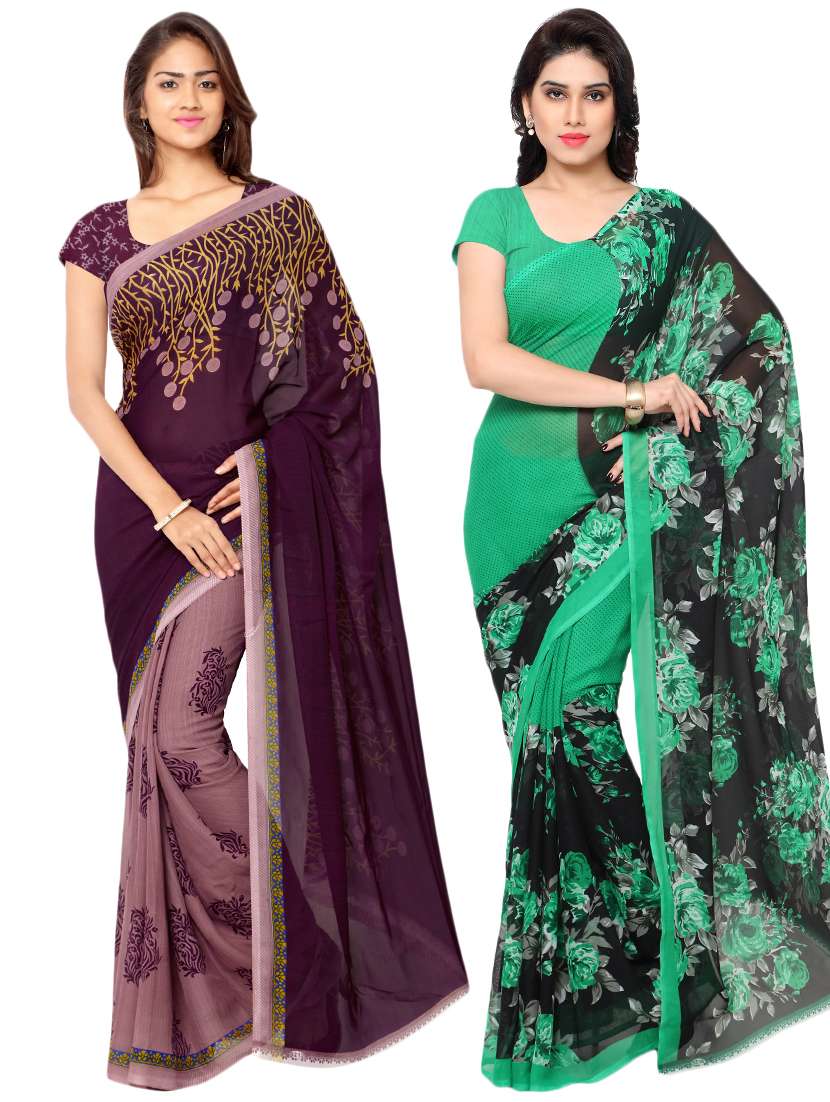 set of 2 multicolor printed saree combo with blouse - 16426733 - Very Small Image - 1