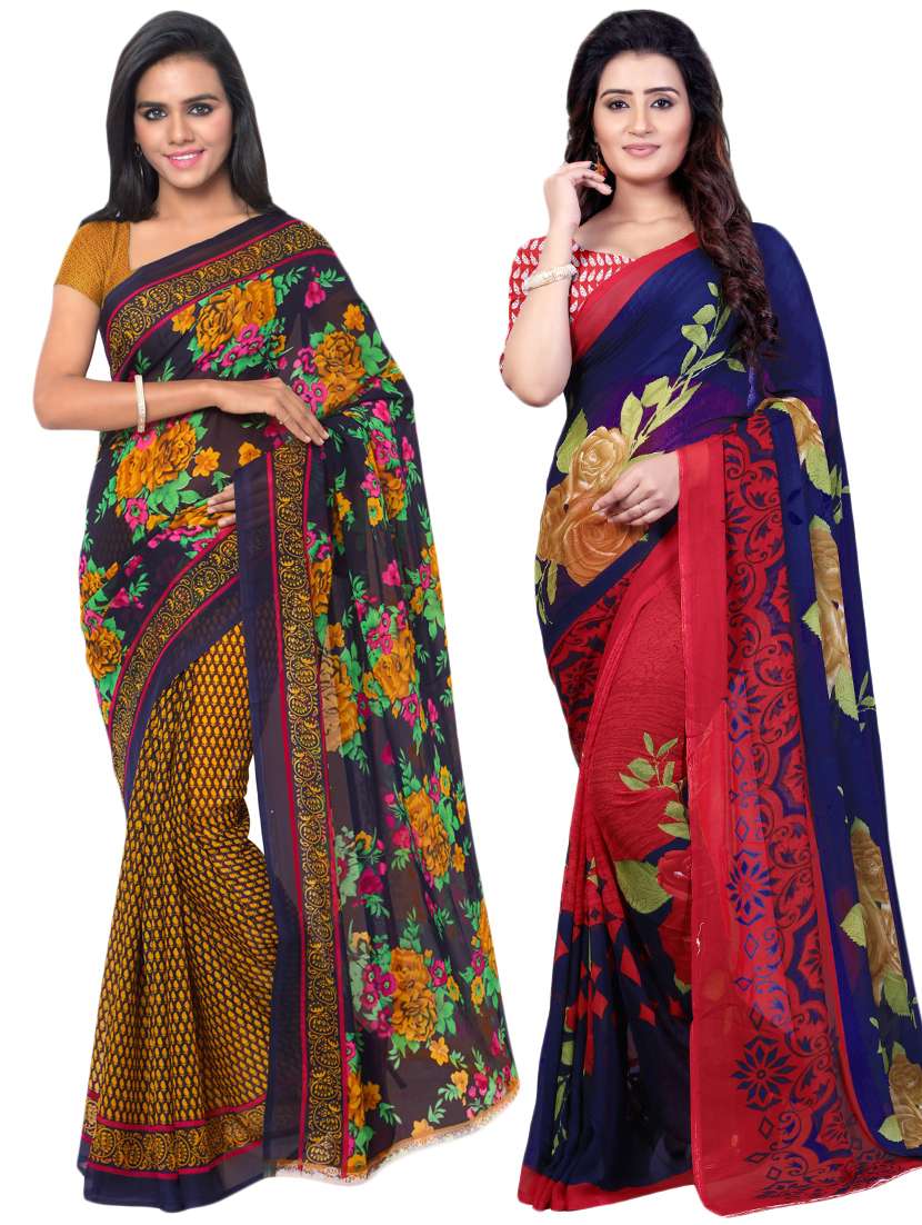 set of 2 multicolor printed saree combo with blouse - 16426760 - Very Small Image - 1