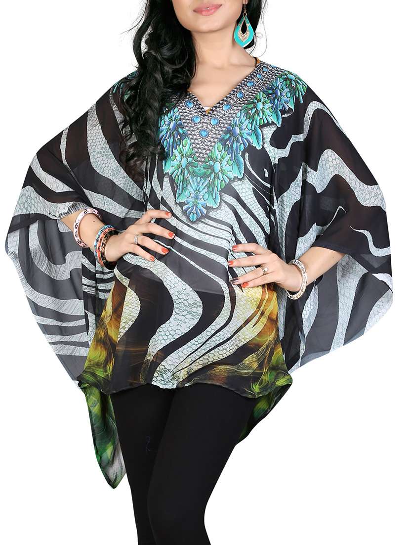 multicolored printed georgette kaftan