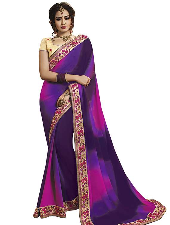- » contrast border embroidered saree with blouse