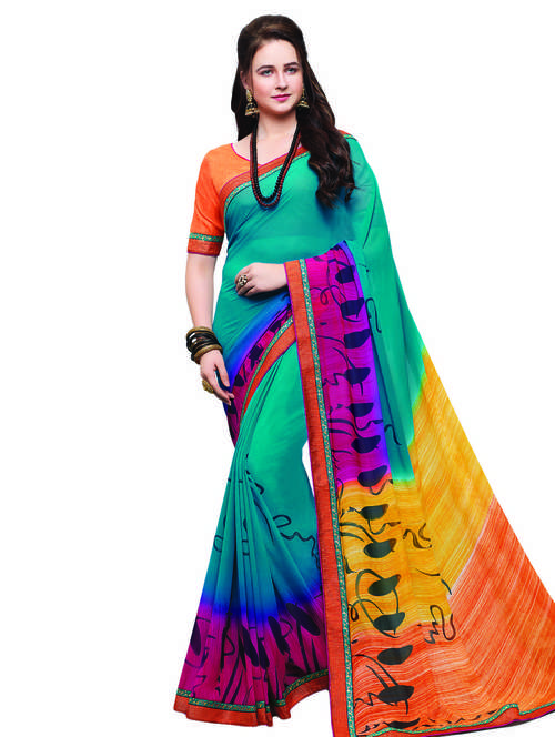 contrast bordered printed saree with blouse - 15647686 - Very Small Image - 1