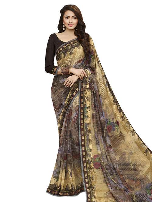 abstract printed saree with blouse - 15647729 - Very Small Image - 1