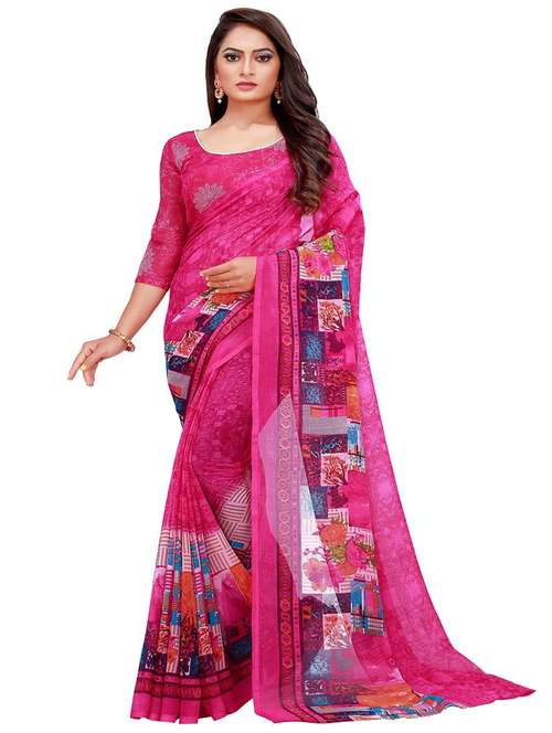 - » women's floral magenta colored saree with blouse