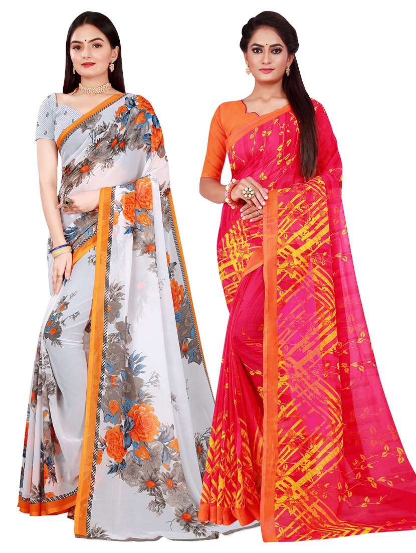 pack of 2 printed saree  with blouse - 20216769 - Very Small Image - 1