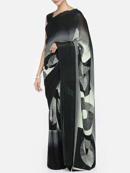 - » monochrome printed saree with blouse