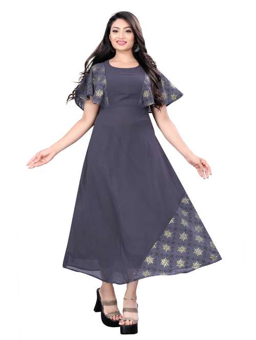 - Grab this beautiful kurta made up of georgette fabric featuring round neck designs.