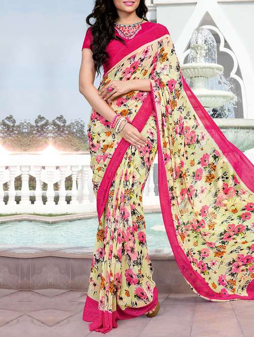pink georgette floral printed saree with blouse - 13669920 - Very Small Image - 1