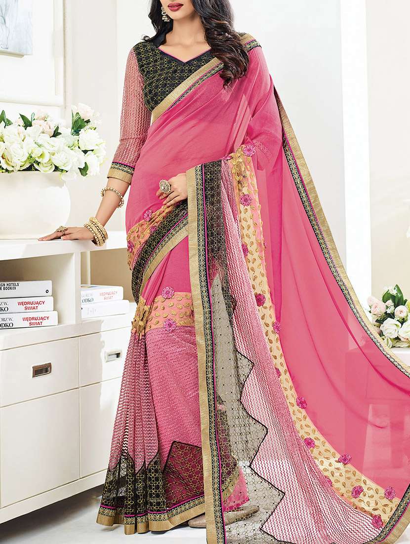 - » pink embroidered saree with blouse