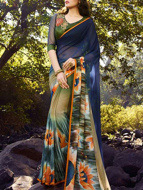 Shaily Retails look simple and sober stylish multicolor georgette embellished saree. This beautiful casual saree is elegantly decorated with gorgeous prints and pattern that gives a perfect look to the outfit. This saree is an ideal for casual functions and social gathering. Saree comes along with matching fabric unstitched blouse piece. Saree Length:- 5.5 MTR, Saree Fabric:- Georgette, Blouse Fabric:- Banglory Silk, Blouse Length:- 0.80 MTR Note : All products of Shaily Retails comes under the copyright with trademark under Gujarat Commercial Tax.