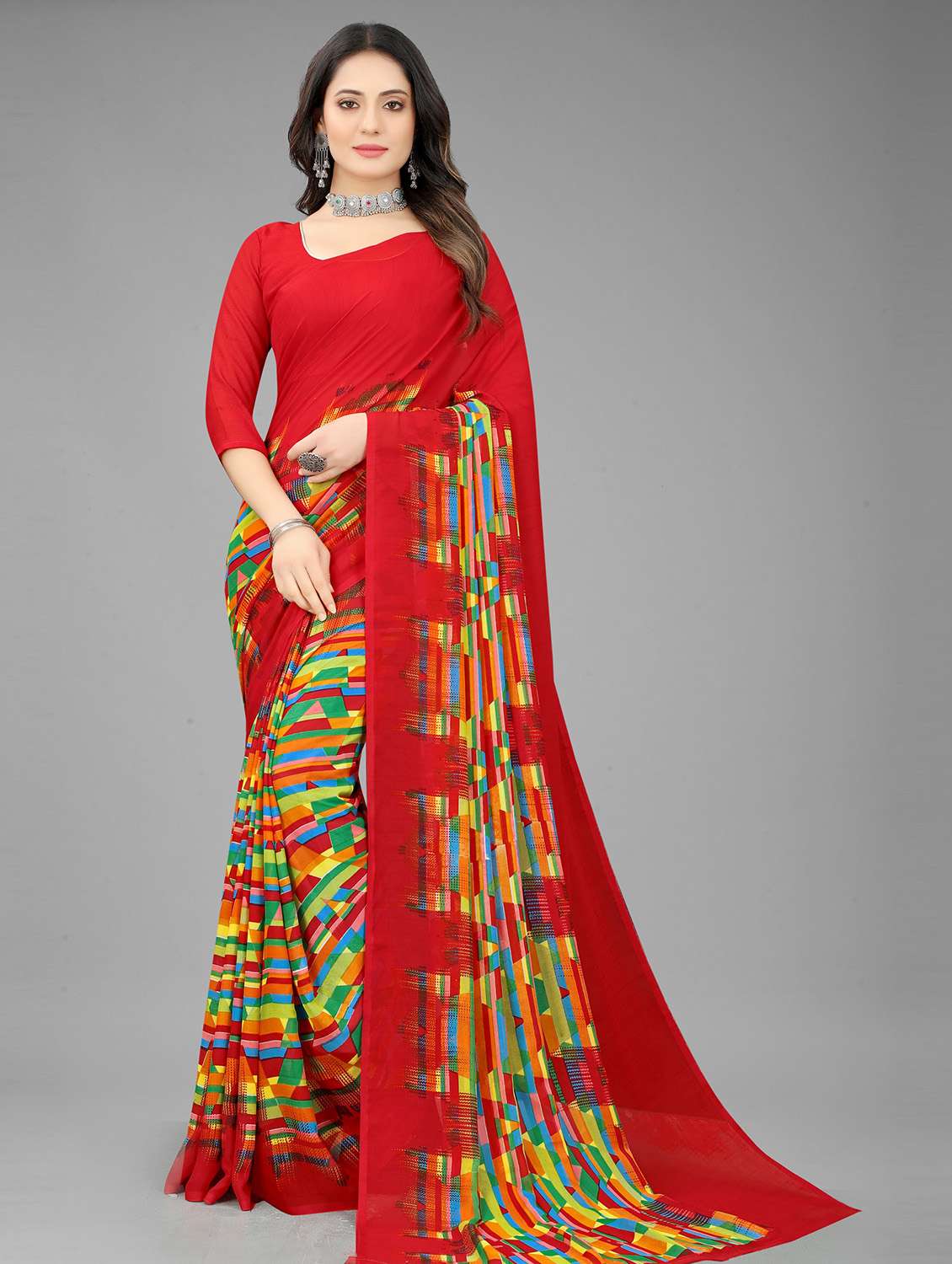 Red Colour Pure Georgette Printed Saree With Blouse Piece