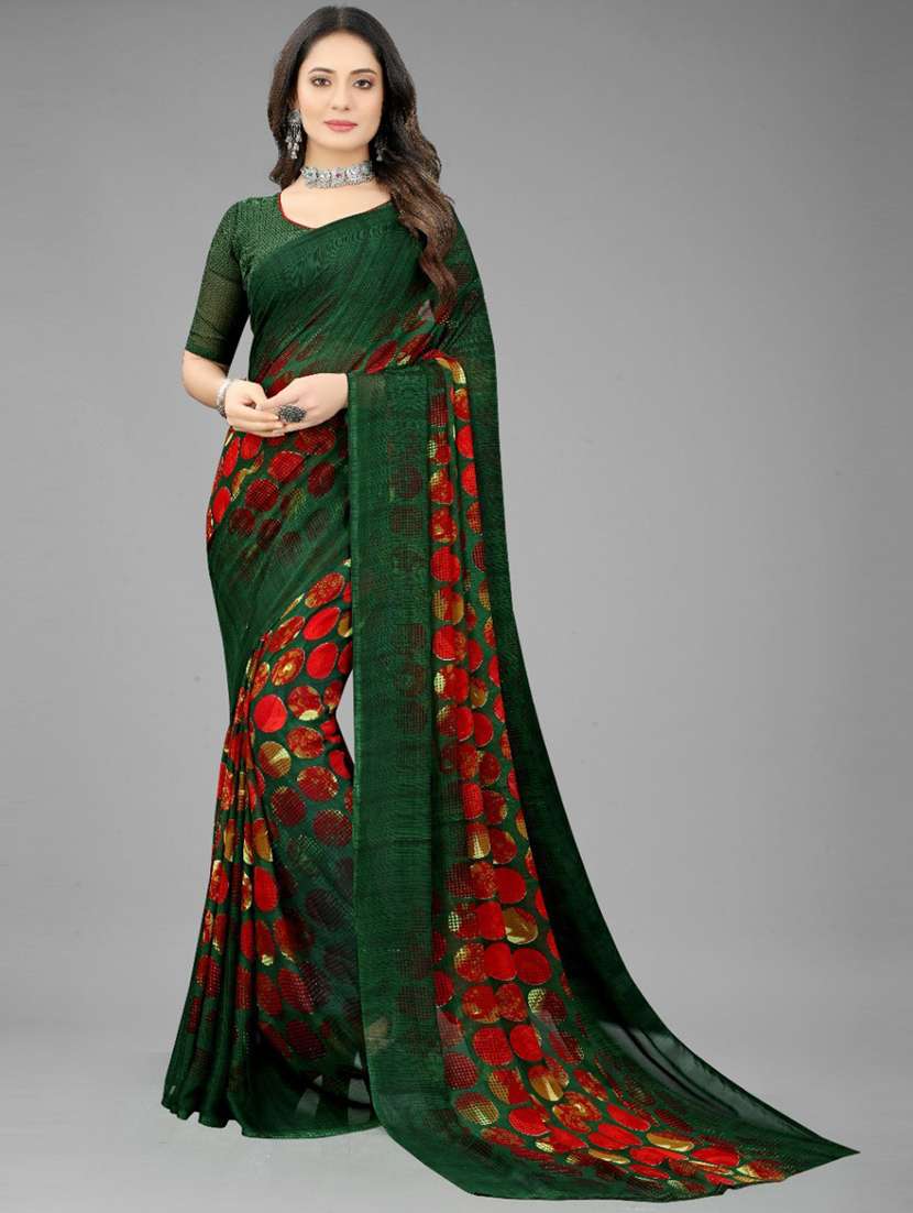 - » women's printed green colored saree with blouse