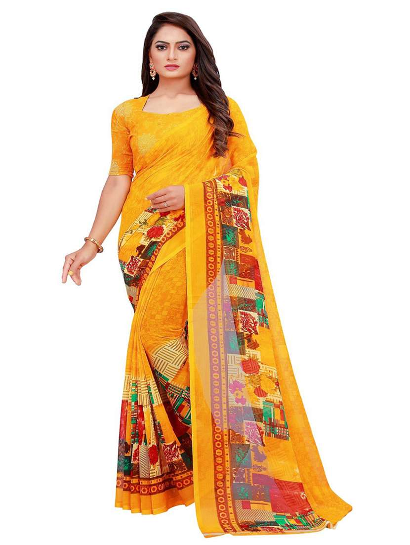 women's self design orange colored saree with blouse - 18696548 - Very Small Image - 1