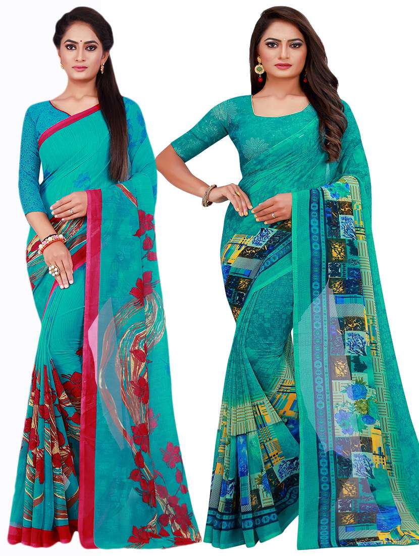 pack of 2 printed sarees with blouse - 18740538 - Very Small Image - 1