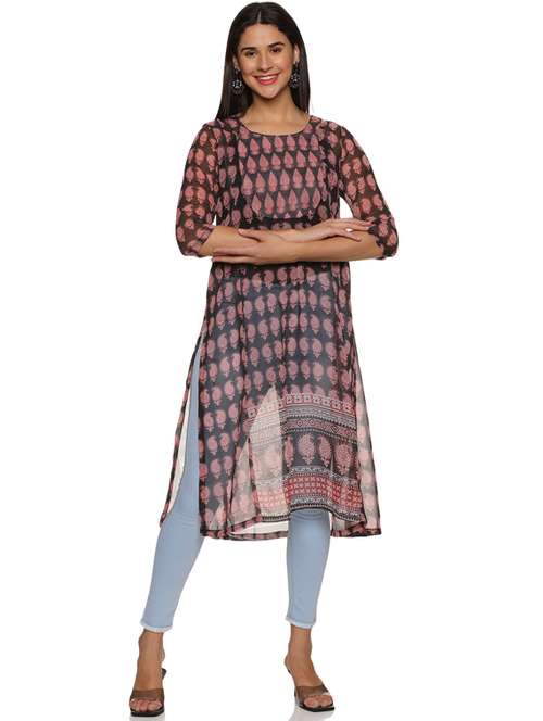 - Grab this beautiful kurta made up of georgette fabric featuring round neck designs.