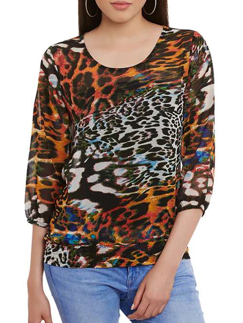 Wisstler Women's Multicolor Poly Georgette 3/4 Sleeve Top