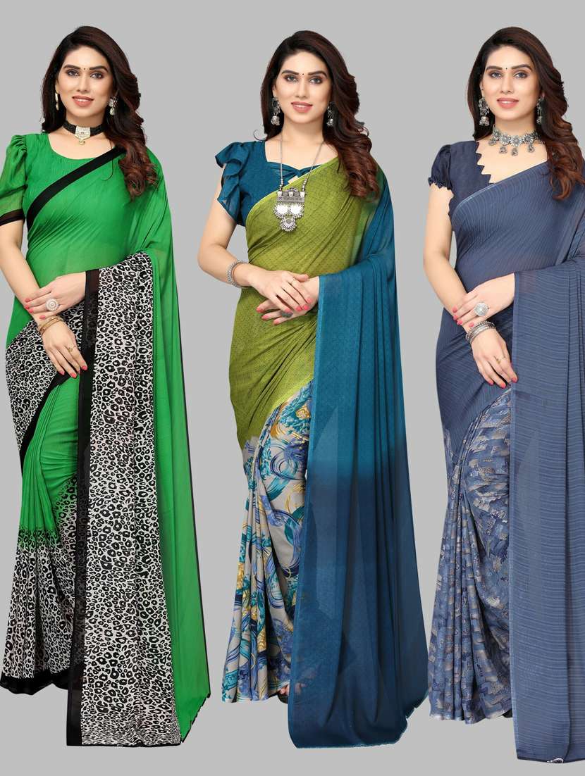 pack of 3 printed saree with blouse