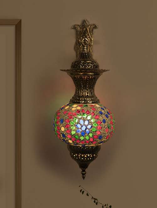 fos lighting turkish multicoloured mosaic glass and brass wall lamp