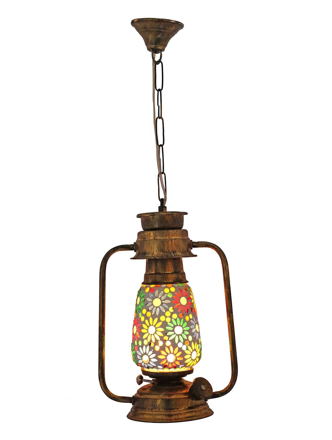 antique pendant hanging lantern lamp light with colorful glass