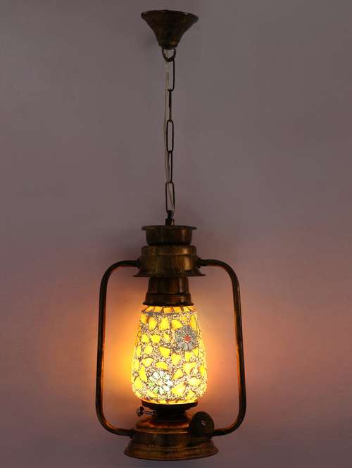 antique pendant hanging lantern lamp light with colorful glass - 14131940 - Very Small Image - 1