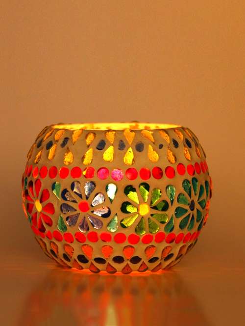 - » new design candle votive decorated with colorful chips & beads(set of 5)