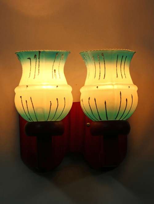 - » new stylish twins hand decorative colorful glass wall lamp light with royal wooden fitting dn-2wa56