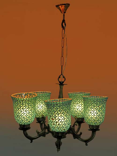 royal chandelier decorate with chips & beeds glass for magical & romantic lighting effect ,5 light ceiling pandent lamp