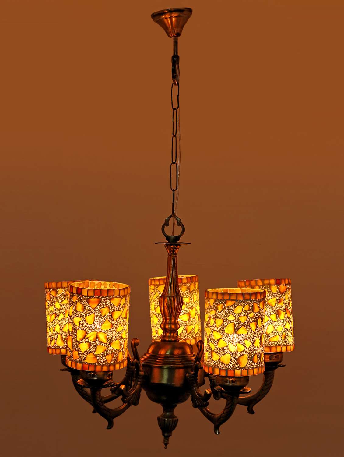 royal chandelier decorate with chips & beeds glass for magical & romantic lighting effect ,5 light ceiling pandent lamp