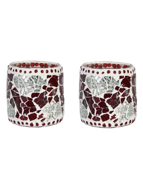 candle & tea light holder decorated with glass chips, colorful lighting effects, pack of 2