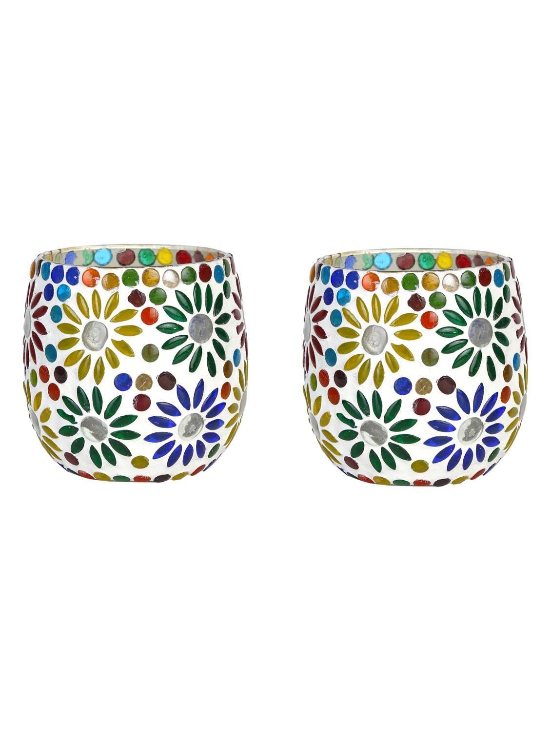 - » candle & tea light holder decorated with glass chips, colorful lighting effects, pack of 2