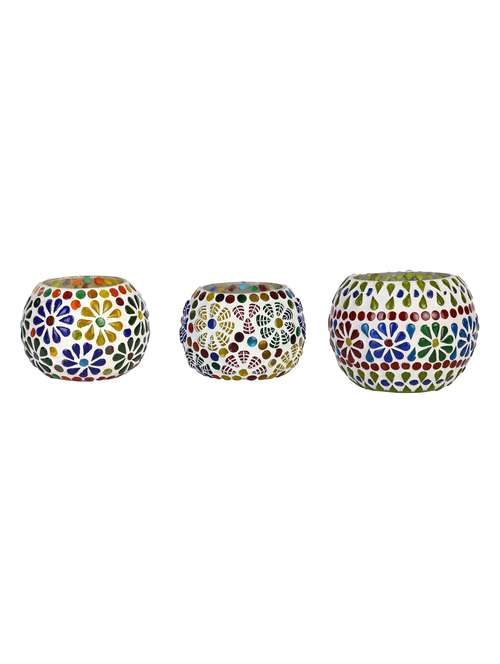 candle & tea light holder decorated with glass chips, colorful lighting effects, pack of 3